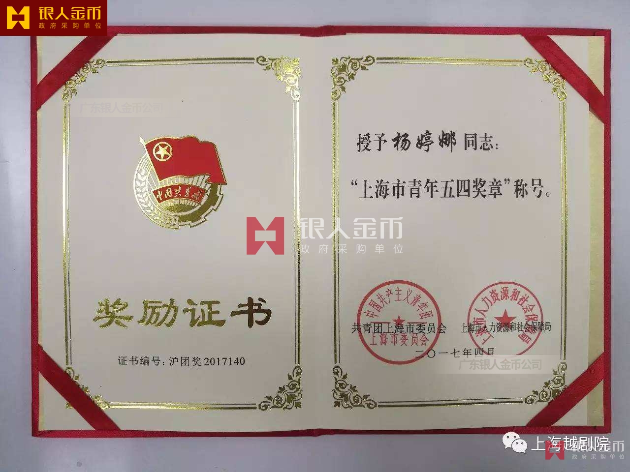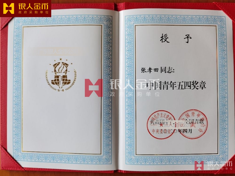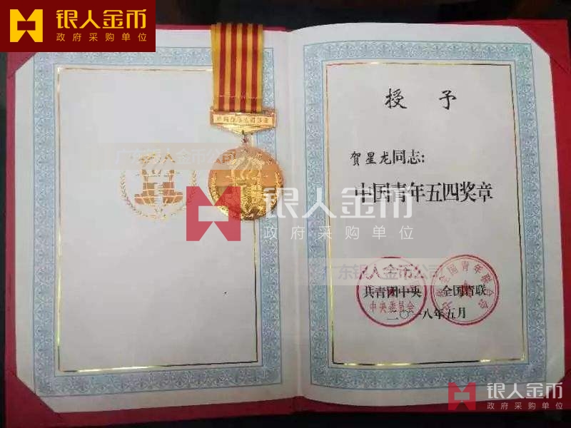 共青團(tuán)中央/全國青聯(lián)中國青年五四獎?wù)潞椭袊嗄晡逅莫務(wù)录w獎牌(圖)