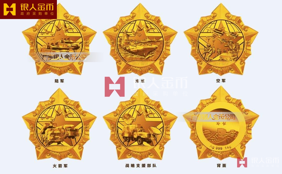 正面以陸軍、海軍、空軍、火箭軍、戰(zhàn)略軍五大軍種主圖案,呈現(xiàn)了五大軍種斗志昂揚(yáng)的精神風(fēng)貌,背面圖案為五星及長(zhǎng)城,寓意共產(chǎn)黨領(lǐng)導(dǎo)下的人民軍隊(duì),是保衛(wèi)祖國(guó)的鋼鐵長(zhǎng)城。