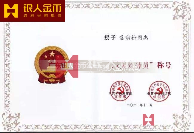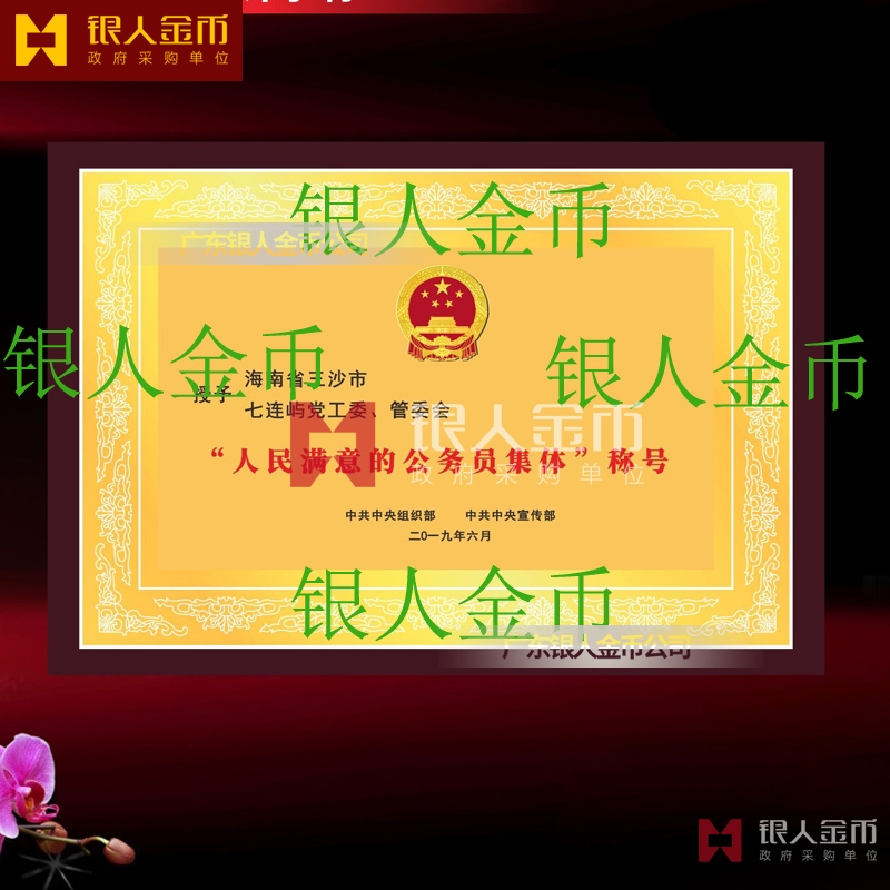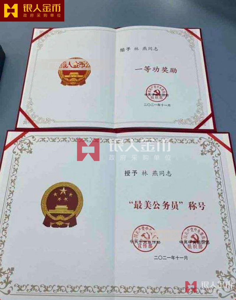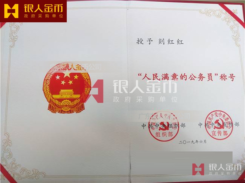 最新!中共中央組織部人民滿意的公務(wù)員稱號獎牌獎?wù)陋剟钭C書/榮譽(yù)證書