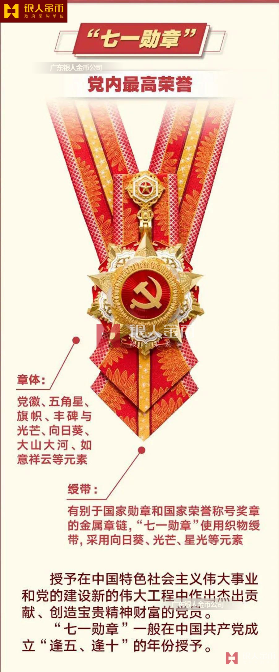 2、七一勛章是黨內最高榮譽,授予在中國特色社會主義偉大事業和黨的建設新的偉大工程中作出杰出貢獻、創造寶貴精神財富的黨員! 七一勛章一般每5年授予一次,在慶祝建黨“逢五、逢十”周年時頒發。 2021年6月29日,在“七一建黨節”之前,29名杰出的黨員獲得了首批七一勛章 。