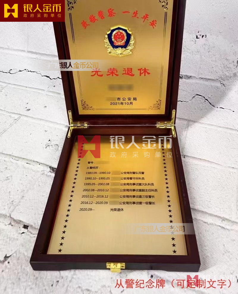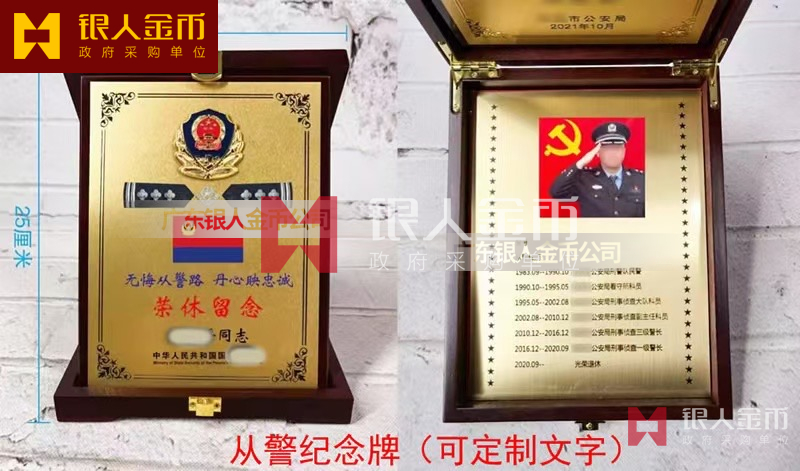 警察入警從警紀念牌,民警榮休紀念獎牌擺件-【《公安機關人民警察榮譽儀式規范(試行)》】