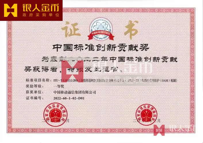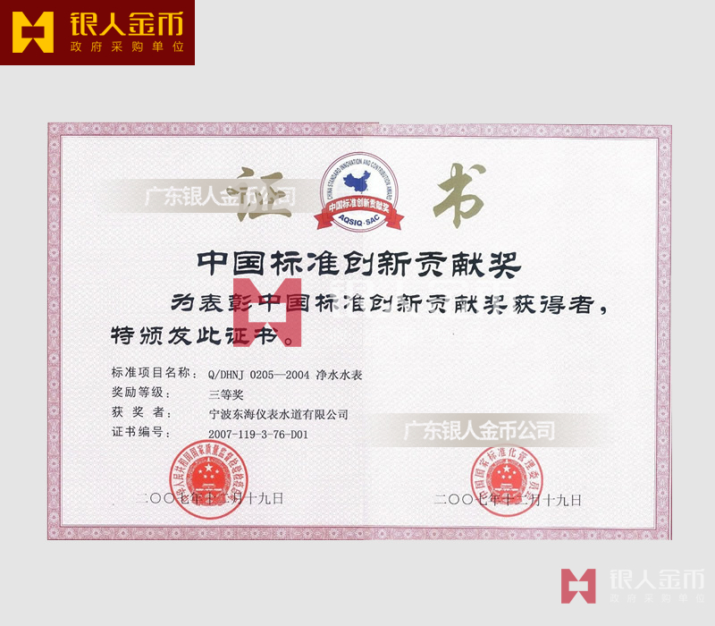 國家市場監(jiān)管總局(國家標(biāo)準(zhǔn)委)負(fù)責(zé)中國標(biāo)準(zhǔn)創(chuàng)新貢獻(xiàn)獎獎牌證書(圖)