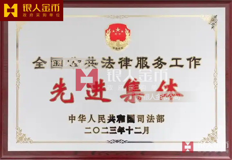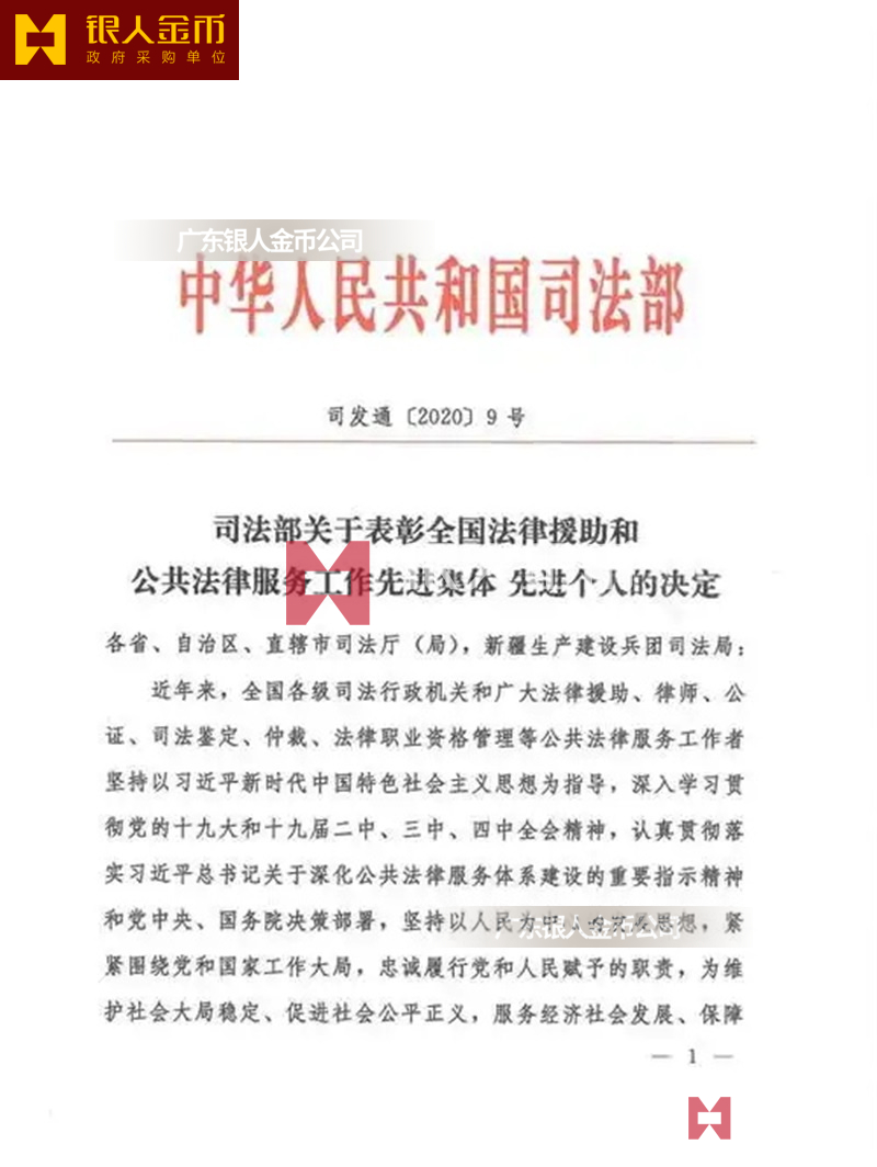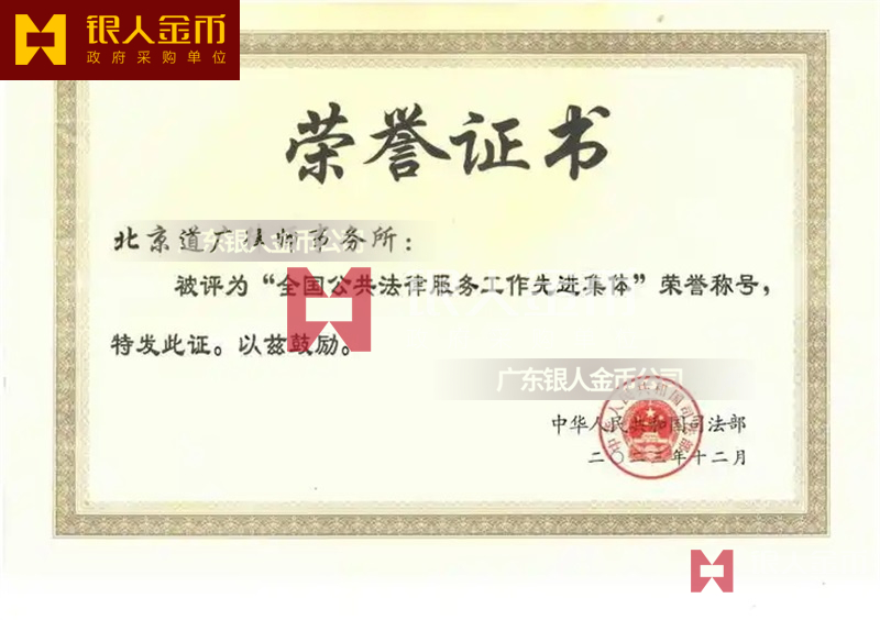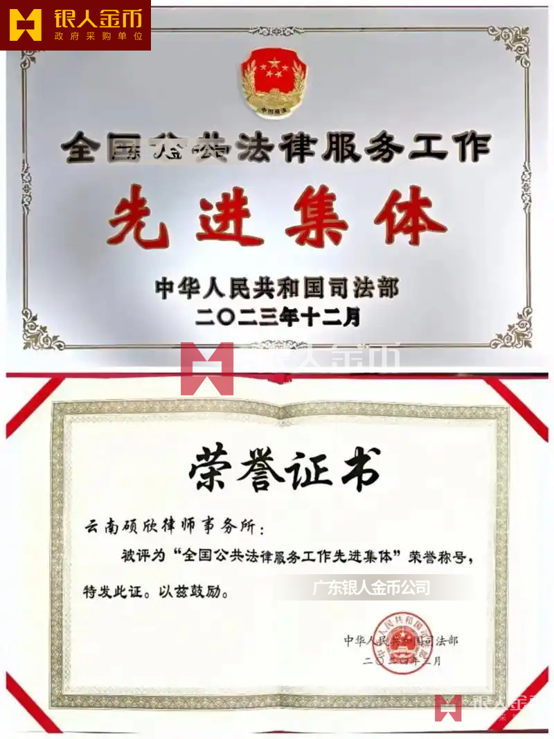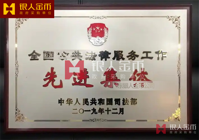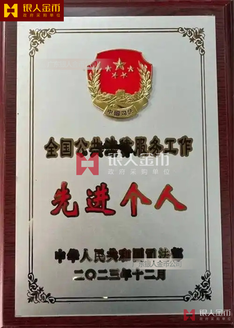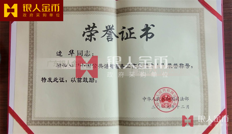 司法部全國公共法律服務(wù)工作先進(jìn)個(gè)人和先進(jìn)集體獎(jiǎng)牌證書(圖)