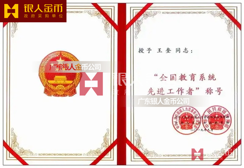 中華人民共和國教育部全國教育系統先進集體獎牌證書與先進工作者獎章勛章紀念章證書(圖)