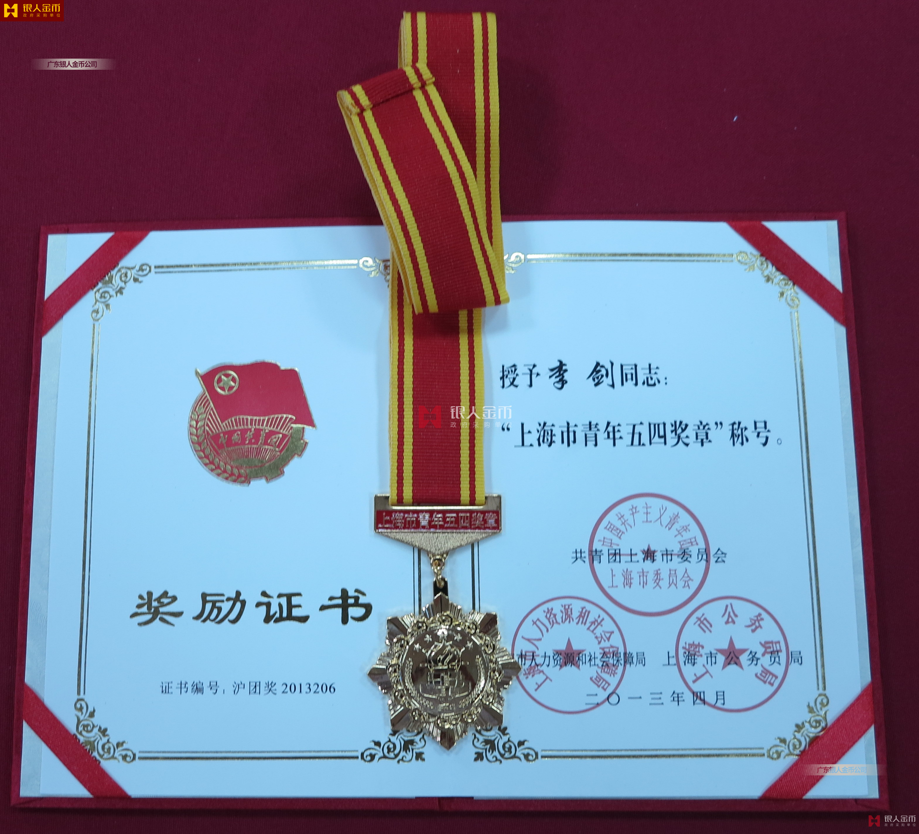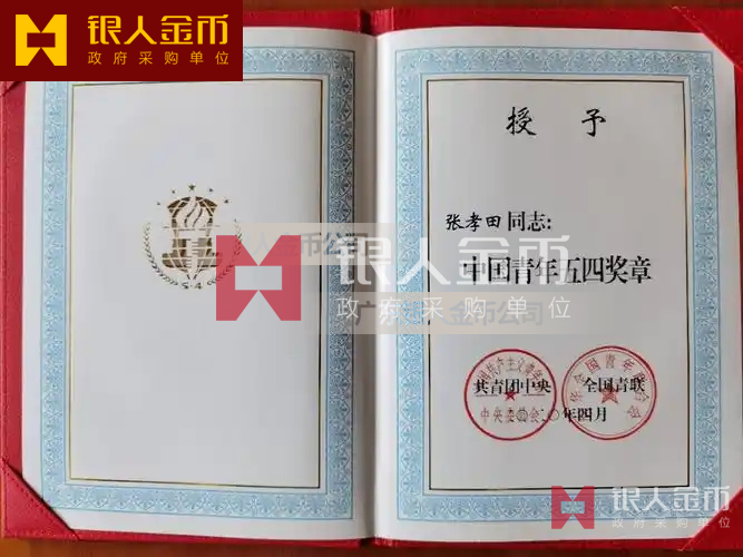 共青團(tuán)中央辦公廳 全國(guó)青聯(lián)中國(guó)青年五四獎(jiǎng)?wù)伦C書(shū)和中國(guó)青年五四獎(jiǎng)?wù)录w獎(jiǎng)牌證書(shū)(圖)