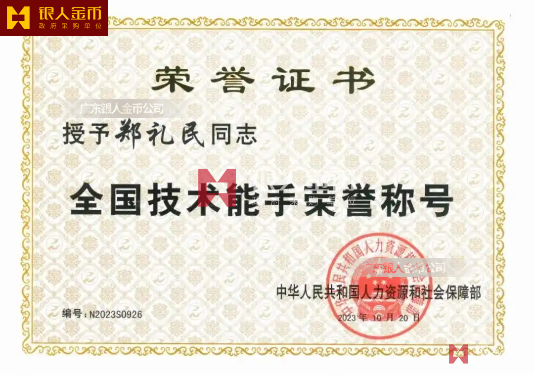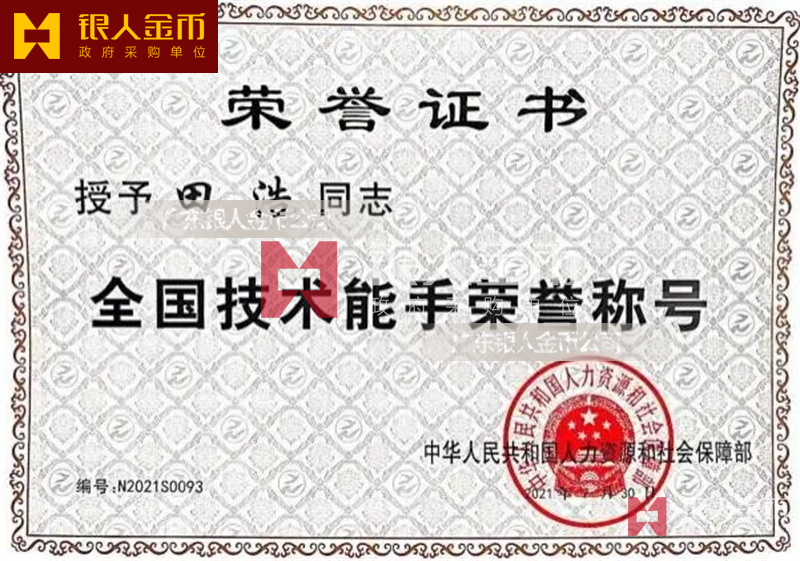 中華人民共和國人力資源和社會保障部全國技術能手榮譽稱號榮譽獎章榮譽獎牌獎章榮譽紀念章榮譽勛章證書紀念徽章紀念證章(圖)