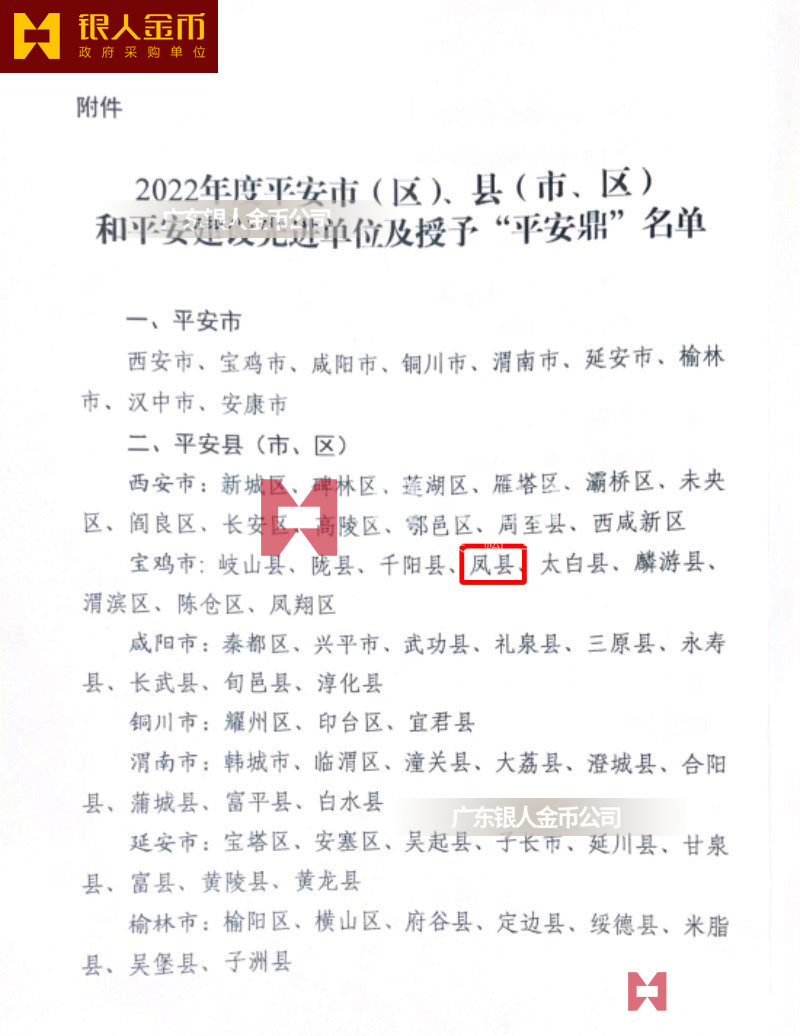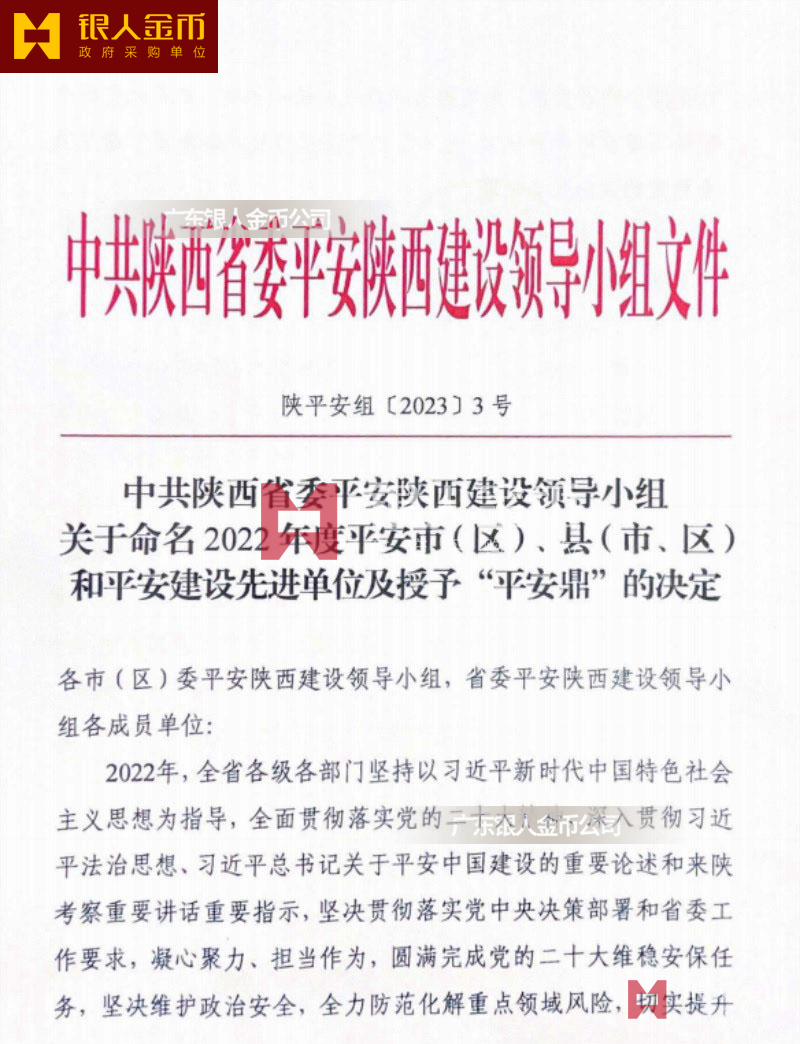 中共陜西省委政法委員會金鼎銀鼎銅鼎平安鼎和平安市區縣獎牌證書(圖)中共陜西省委平安陜西建設工作領導小組辦公室監制頒發頒授