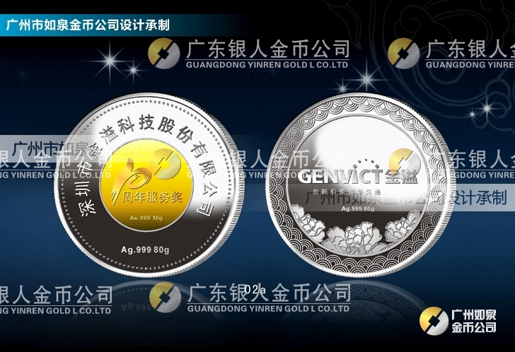 深圳金溢科技公司周年慶典制作純銀包金紀(jì)念幣