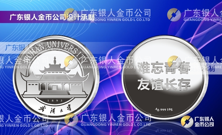 武漢大學(xué)同學(xué)畢業(yè)三十周年聚會留念慶祝活動紀念銀幣定做、純銀紀念幣定制