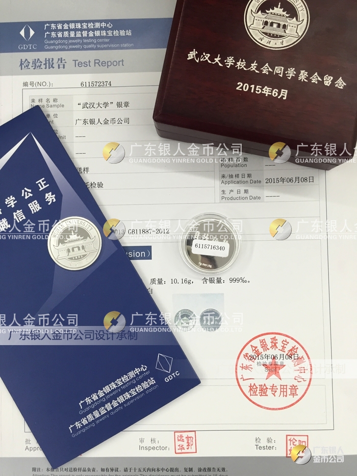 廣東銀人金幣公司承接客戶個性化定制的金銀幣、金銀章、金銀條、金銀牌、金銀盤均由國家質(zhì)監(jiān)部門、嚴格檢測、權(quán)威鑒定: