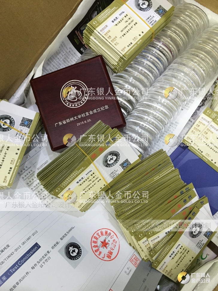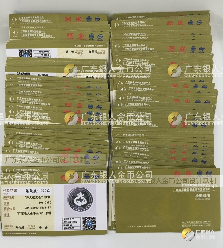廣東銀人金幣公司承接客戶個性化定制的金銀幣、金銀章、金銀條、金銀牌、金銀盤均由國家質(zhì)監(jiān)部門、嚴格檢測、權(quán)威鑒定: