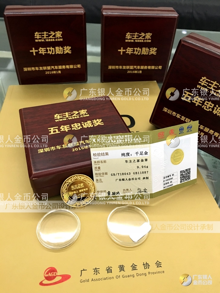 2016年1月訂做 深圳車主之家公司千足金章純金紀(jì)念章訂制