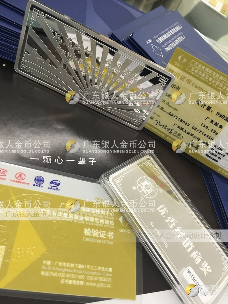 廣東銀人金幣公司承接客戶個(gè)性化定制的金銀幣、金銀章、金銀條、金銀牌、金銀盤(pán)均由國(guó)家質(zhì)監(jiān)部門(mén)、嚴(yán)格檢測(cè)、權(quán)威鑒定: