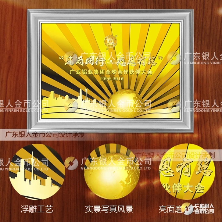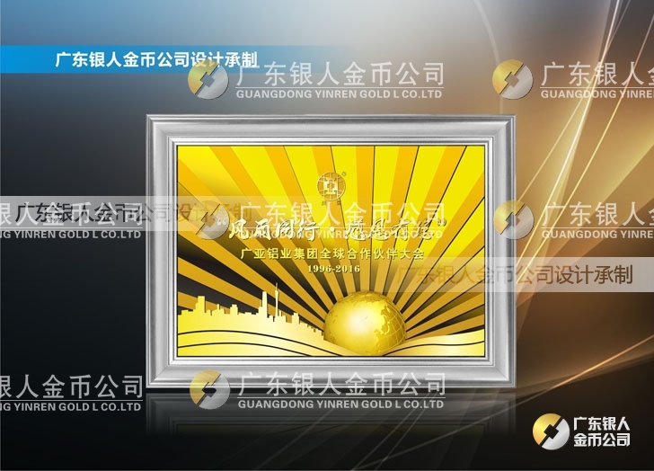 2016年4月定制 廣亞鋁業(yè)全球合作伙伴純金金畫浮雕金箔畫