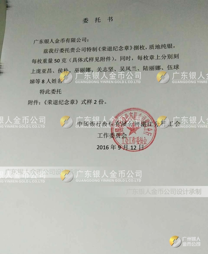 廣東銀人金幣公司,是集紀(jì)念章、獎(jiǎng)?wù)隆渍略O(shè)計(jì)、研發(fā)、定制并服務(wù)于榮譽(yù)稱號全表彰獎(jiǎng)勵(lì)周期管理,致力于證章文化產(chǎn)業(yè)發(fā)展和徽章信息化研究的大型生產(chǎn)制造獨(dú)資企業(yè),是國家級紀(jì)念章、獎(jiǎng)?wù)碌脑O(shè)計(jì)者(外包)、制造者(定點(diǎn))和維護(hù)者(認(rèn)可),金銀章綜合解決方案的提供者。在全國獎(jiǎng)?wù)聞渍骂I(lǐng)域,廣東銀人金幣公司擁有專業(yè)的勛章產(chǎn)業(yè)規(guī)模、齊全的證章門類和完整的紀(jì)念章產(chǎn)業(yè)鏈條。