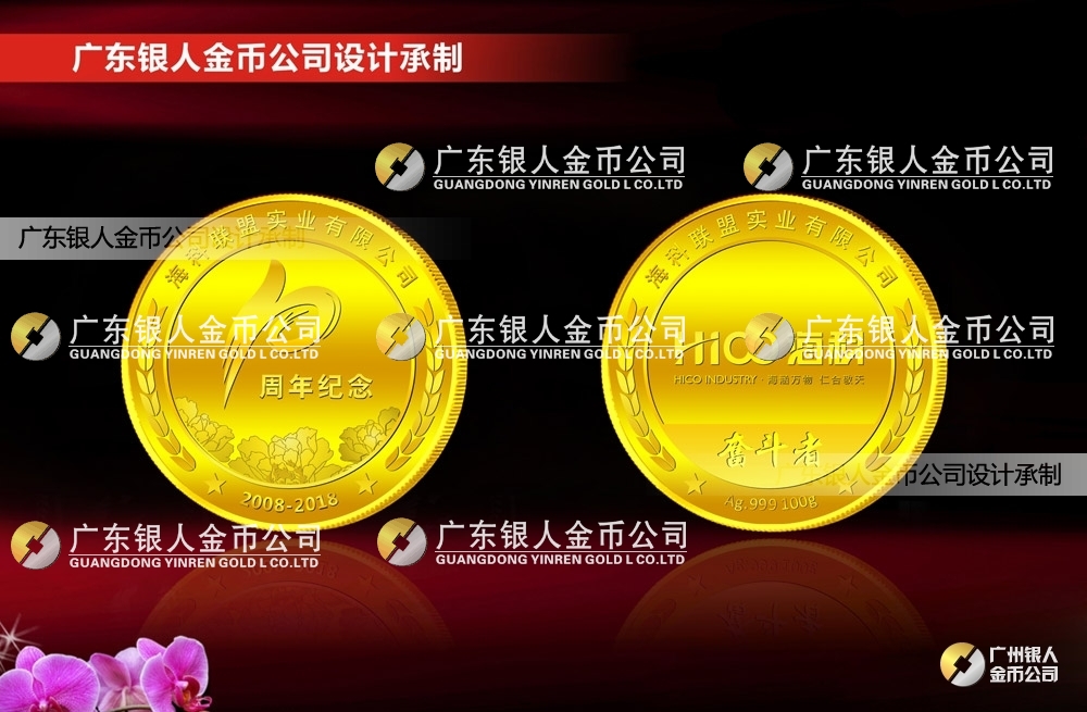 大連海科聯盟主攻房地產、醫院、樓盤導向標識、標牌工程項目,委托我司設計制作公司10周年金銀幣定制。