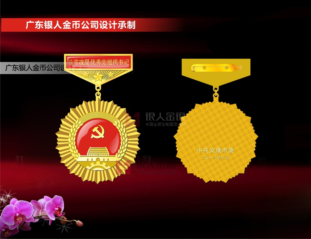 中共安康市委、安康市人民政府2018年度表彰脫貧攻堅優秀黨組織獎章制作、勛章制作、獎章定制、勛章定制、獎章定做、勛章定做