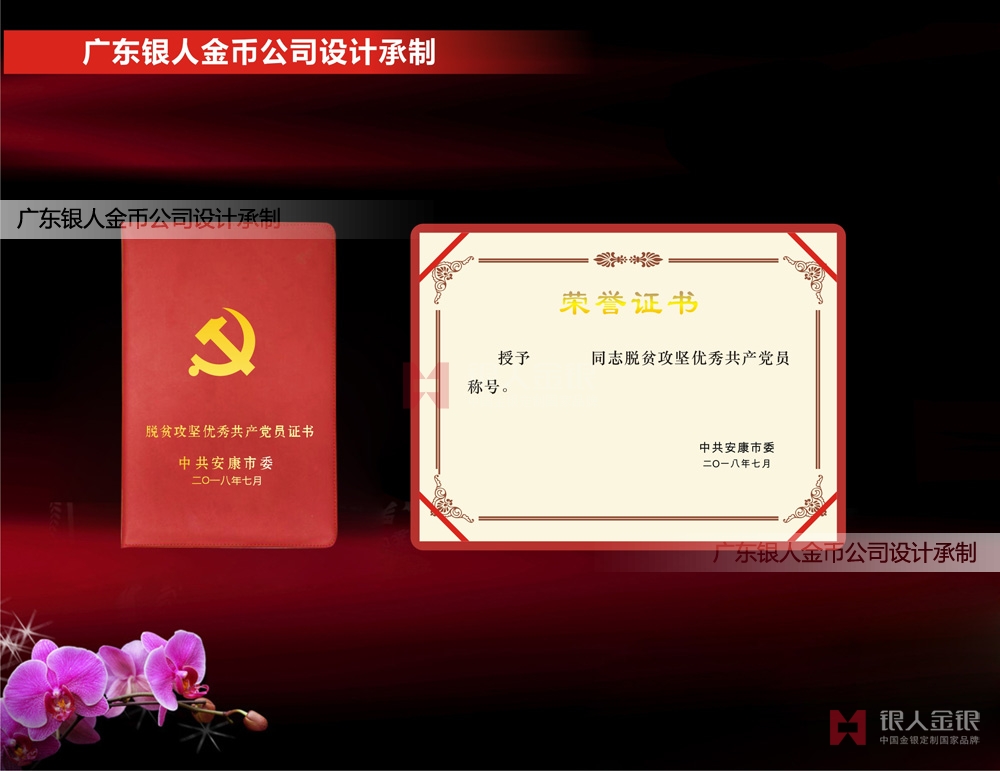 “兩優一先”優秀共產黨員獎章證書、優秀黨務工作者獎章證書、先進基層黨組織獎牌證書(定制標準)