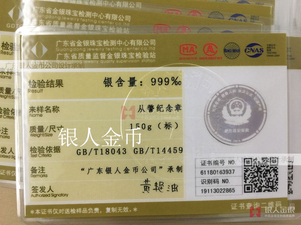 【警察從警紀念章制作】 廣東銀人金幣公司-紀念章制作廠家