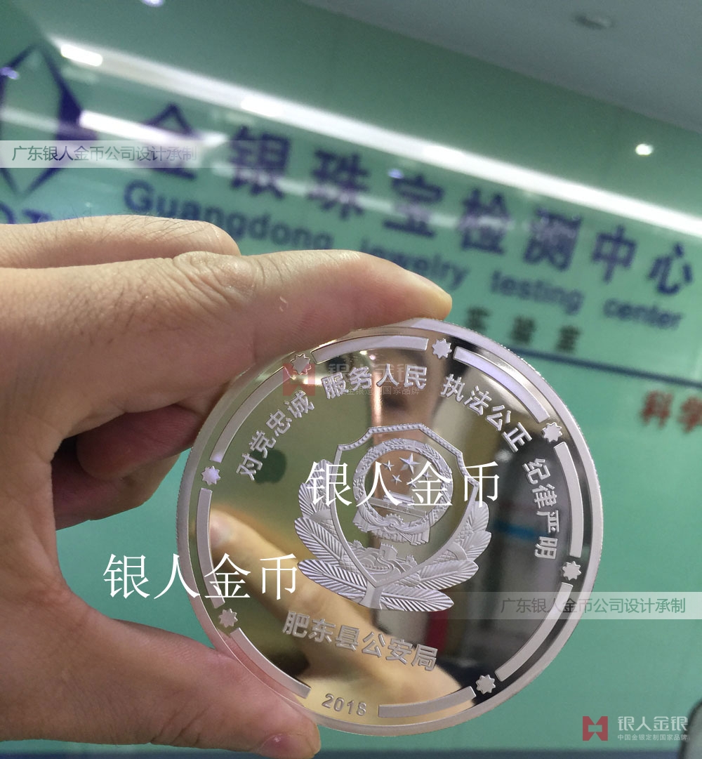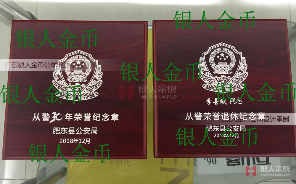 肥東縣公安局從警30年榮譽退休紀念章定制_金銀紀念幣定制_從警特定年限紀念章制作