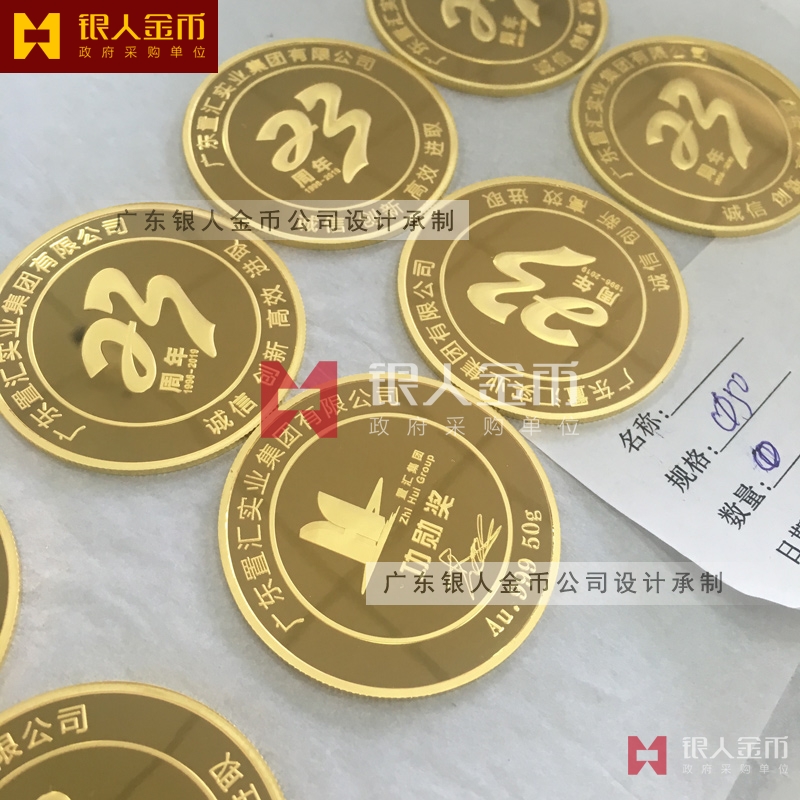 置匯實業集團公司成立23周年紀念慶典、為工作滿5年優秀員工、滿10年突出貢獻獎、入司20年功勛獎純金獎牌。