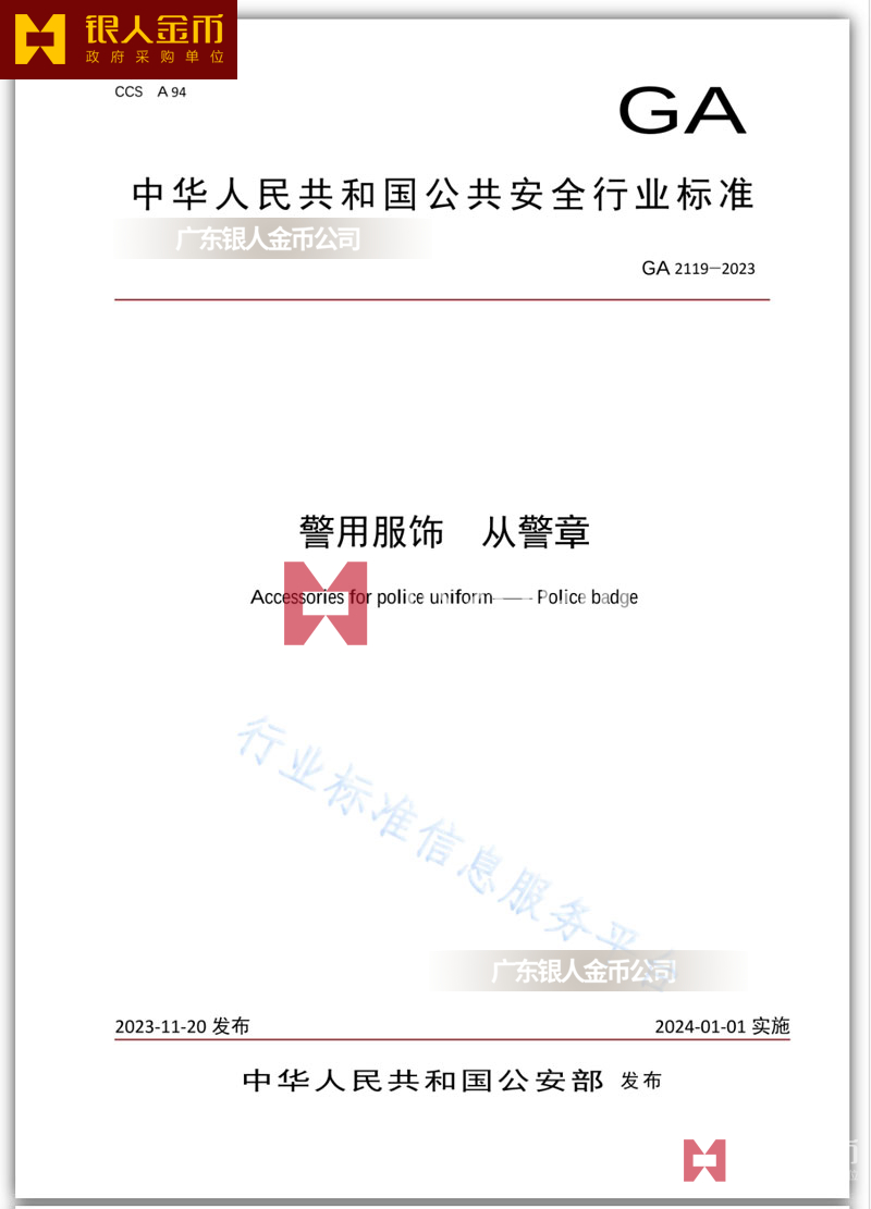 公安部警用服飾從警章、警禮服從警章、警禮服年限章、警禮服從警特定年限紀念章、從警30年紀念章、警察從警榮譽章、民警從警紀念章、公安機關干警光榮退休獎章、 人民警察榮譽紀念章、人民警察榮休勛章、公安民警退休勛章、民警榮休獎章、公共安全行業標準(國標)國家標準