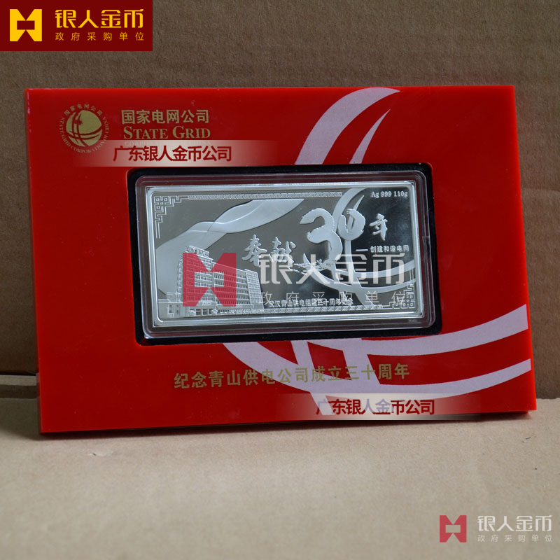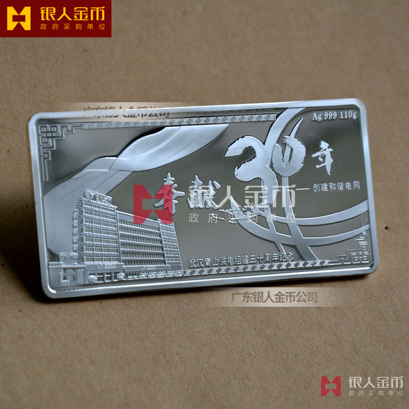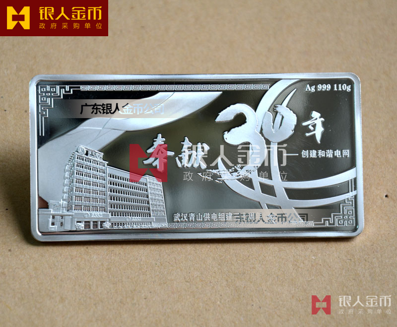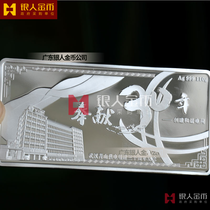 湖北武漢電力組建三十周年紀念銀條定制_武漢銀幣定制_武漢紀念幣定制_武漢純銀紀念幣定制_武漢純銀紀念章定制_武漢訂制銀條_武漢定制紀念銀條_武漢定做銀幣_武漢純銀銀幣定制_武漢銀幣制作